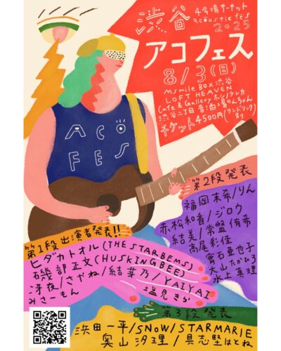 渋谷4会場にて開催される、都市型アコースティック・サーキットFES「渋谷アコフェス2025」、第3弾出演者の発表と共にチケット情報も解禁となりました! フライヤーのイラストを手がけた浜田一平氏の参加や、ヒダカ氏が新作のアレンジを手がけたスノウさんの…