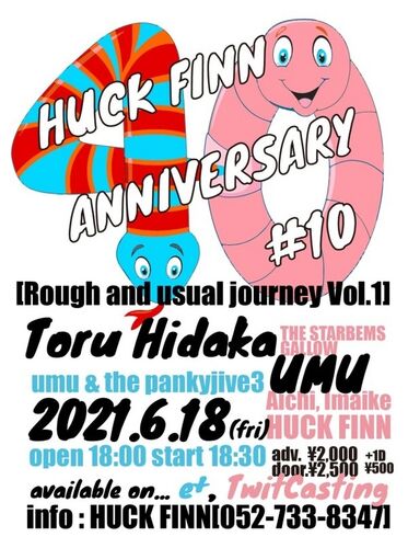 今夜は今池ハックフィン40周年をお祝いすべく、ウム氏のトリオ編成と共にヒダカはアコースティックでお邪魔します。時短要請中なので20時までには終演予定ですが、セッションや配信のご用意もありますので、お気軽にチェックしてみてください。6/18(金) =HUC…