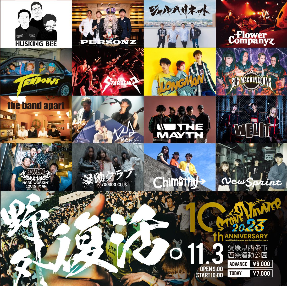 コロナ禍による中止を経て、屋内での開催など模索を続けた音楽フェスであるストーン・ハンマー通称ストハンが、10周年を迎える今年2023年ついに久しぶりの野外開催を解禁し期待が高まる中、当日のタイムテーブルが発表になりました!